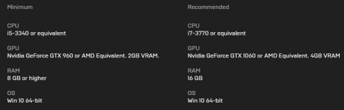《心灵杀手:复刻版》将在今年秋季发售,本作由Epic发行,除游戏本体外,还将包括原作所有DLC,并将新增4K画质升级。近日本作公布了游戏的PC配置需求。游戏最低需要i5处理器和GTX960显卡,推荐使用I7处理器和GTX1060显卡。