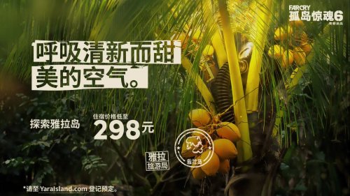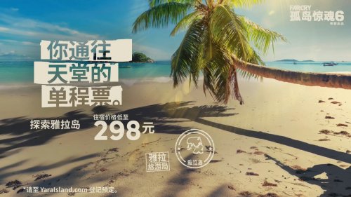 《孤岛惊魂6》将在10月7日发售,育碧近日开启了整活式宣传,放出了《孤岛惊魂6》全新旅游宣传片。视频展示了美丽的雅拉岛屿热带风情,不过每次都混入了奇怪的东西,298元购买通向天堂的单程票。