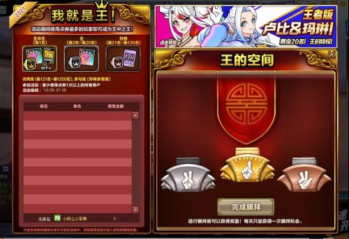 活动结束后,前二十名可获得王者限定角色:王者版卢比&玛琳。(活动结束后首次进入游戏发放)