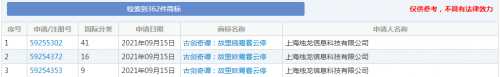 据数据显示,此次申请的三个商标国际编号分别为:41(教育娱乐)、16(办公用品)、9(科学仪器)。而目前这三个商标的申请状态均为“申请收文”阶段。