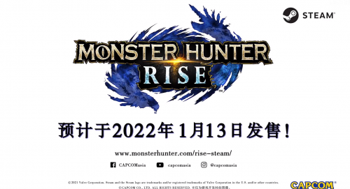 《怪物猎人:崛起》将于2022年1月13日登陆Steam平台,本作将支持4K、高帧率、游戏内语音、超宽屏显示器等多项使用功能;
