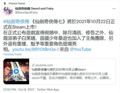 《仙剑奇侠传7》将于10月15日在方块平台首发推出,实体标准版预售优惠价138元、豪华版399元、数字版售价128元。该作已在昨晚(10月8日)结束预售,现在官方推特发文宣布,《仙剑奇侠传7》Steam版将于10月22日正式推出。