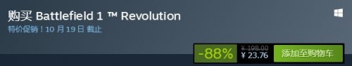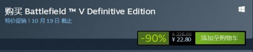 两款游戏也在分别促销之中,《战地1》原价198元,现在折后只要23.76元。《战地5》原价228元,现在折后仅需22.8元。已经购买过一作的玩家可以单独入手另一作。
