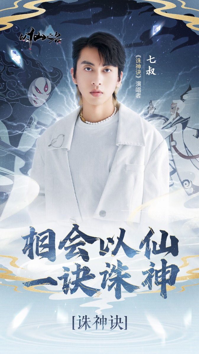 除了酒剑仙谢君豪之外,《以仙之名》邀请到了古风歌手七叔(叶泽浩),演唱以仙之名主题曲《诛神诀》,希望借助七叔特有的古风唱腔,能够让各位道友触碰到居隐心中所含的执念和沧桑,了悟仙缘!一同“剑指九州烽火,诛杀此间神魔”