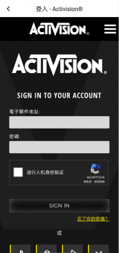 三、登录动视账号,输入动视账号密码,点击完成人机身份验证,下滑点击“SIGN IN”登录