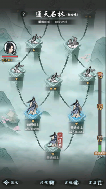 在玩家的成长过程中,战斗也是放置玩法中的重要部分,和一般放置手游简单的天梯推图不同,《以仙之名》巧妙地将roguelike玩法融入了游戏当中,玩家可以在秘境挑战里自主选择前进路线,控制敌人的难度来得到不同的奖励,同时在巧遇、商人那里获得意外惊喜。