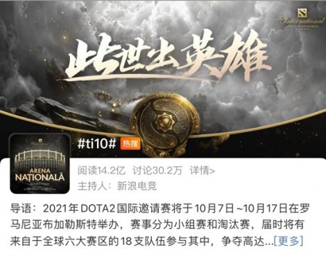 由于去年没有进行《DOTA2》Ti国际邀请赛,所以今年的Ti10关注度格外高。微博平台数据显示,从正式开赛到目前,“TI10”主话题阅读量高达14.2亿次,讨论量超过30万次,多个话题冲上热搜榜。