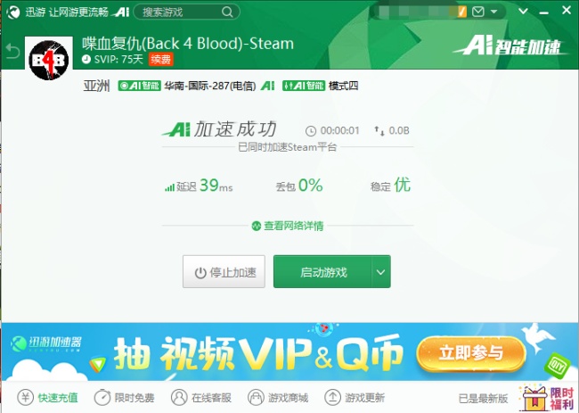 不少玩家在游戏是会发现这款游戏延迟特别高,建议各位玩家在游戏之前开启迅游加速器,迅游加速器支持《喋血复仇》流畅加速。建议大家使用迅游加速器后再进行、游戏。迅游加速器已支持《喋血复仇》加速,军工级加速专线确保各位玩家的游戏数据直达服务器,助力各位玩家超低延迟,稳定联机。