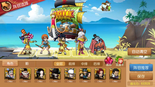 突破甚平(法甲)+突破奶昔(法甲)+小菊(法穿)+阿奈美(法穿)+佩罗斯佩罗(法甲)。船技:前进路飞前辈号。