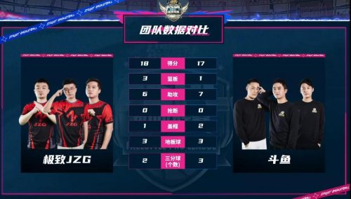 斗鱼与极致JZG之间的比赛,极致JZG采用PG+SG+PF的阵容对抗斗鱼的2G阵容,取得了奇效,第一局比赛