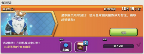 皇家幽灵兵种的各项数值都是比较可观的,最亮眼的特色技能就是隐身。隐身效果能够持续12秒,从而不被防御物攻击,也能够无视城墙的阻挡,这也太强大了吧~~这个戴着皇冠的幽灵老头,攻击附带冰冻效果,攻击兵种和建筑时能够将其冰冻。挑战时间内完成“幽灵出没”的活动任务,还有免费的法术之书奖励哦~~