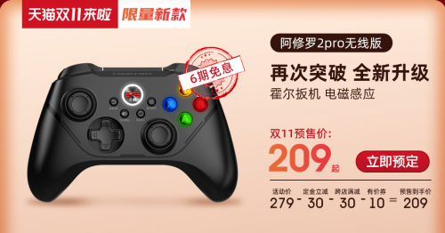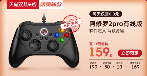 如今北通阿修罗2PRO游戏手柄仍然在火热预售中,其中【有线版】零售价199元,【无线版】279元,在北通预售优惠和天猫双十一折扣活动的叠加下,还能享受双重叠加优惠。