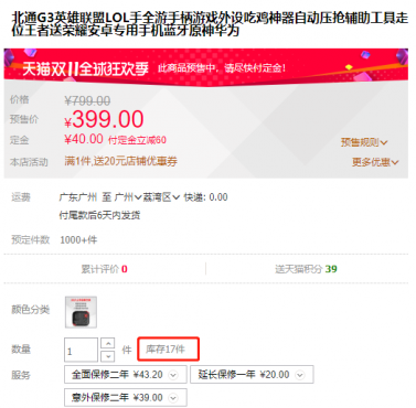 其中第一批预售的北通G3手游手柄,更是在开售的两个小时内便库存告罄,主播被告知库存甚至熬不过当天晚上。在首批北通G3手游手柄售罄后,北通及时补上了部分额外库存,但似乎也只是杯水车薪,浇不灭大伙的预购热情——到小编截稿时刻,北通G3的预定库存也只剩下了最后的17件。