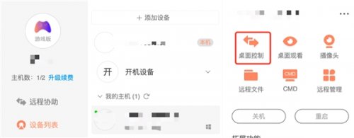 下载好手机端“向日葵远程控制”登录帐号后,在设备中进入我们的主机选项,选择桌面控制。