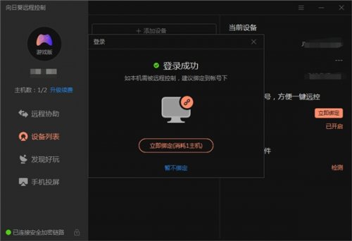 在家中主机下载好“向日葵远程控制”,登录将家中电脑绑定进向日葵帐号里。