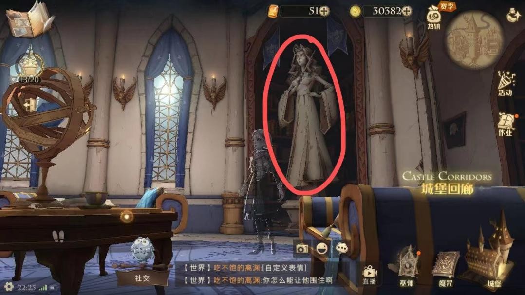 先来到格兰芬多休息室门口,走不靠墙的那个楼梯来到占卜课教室门口,再等旋转楼梯转到靠墙,下楼梯,就是拉文克劳休息室啦。