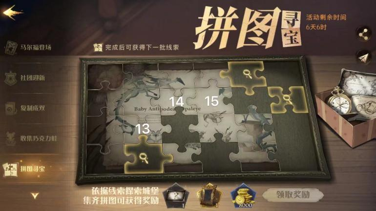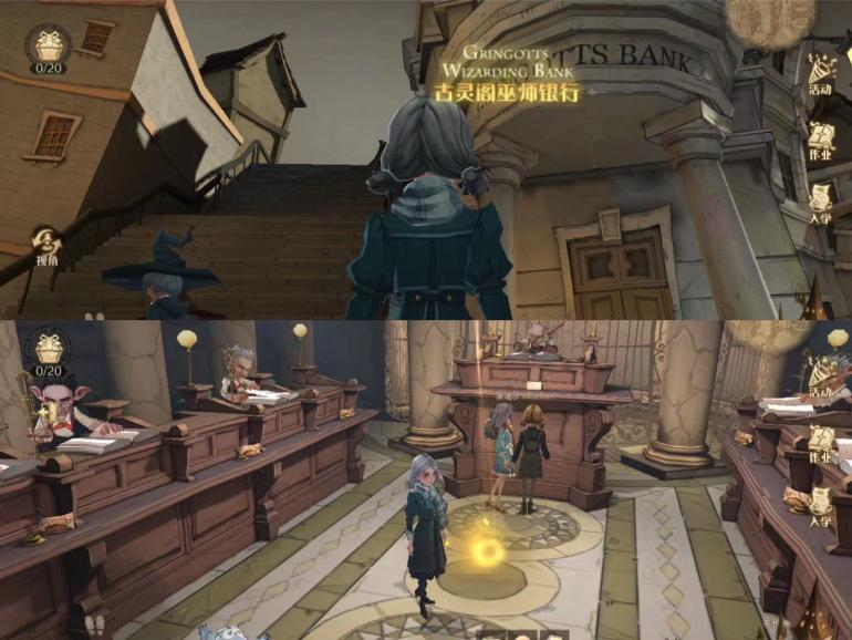 13、来到对角巷→进入古灵阁巫师银行→直着往前走正中间桌子面前可看到金色发光物,点击即可获得拼图