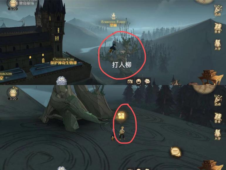 23、来到城堡上空→向禁林方向飞→在打人柳旁边找到凯文→完成任务即可获得拼图