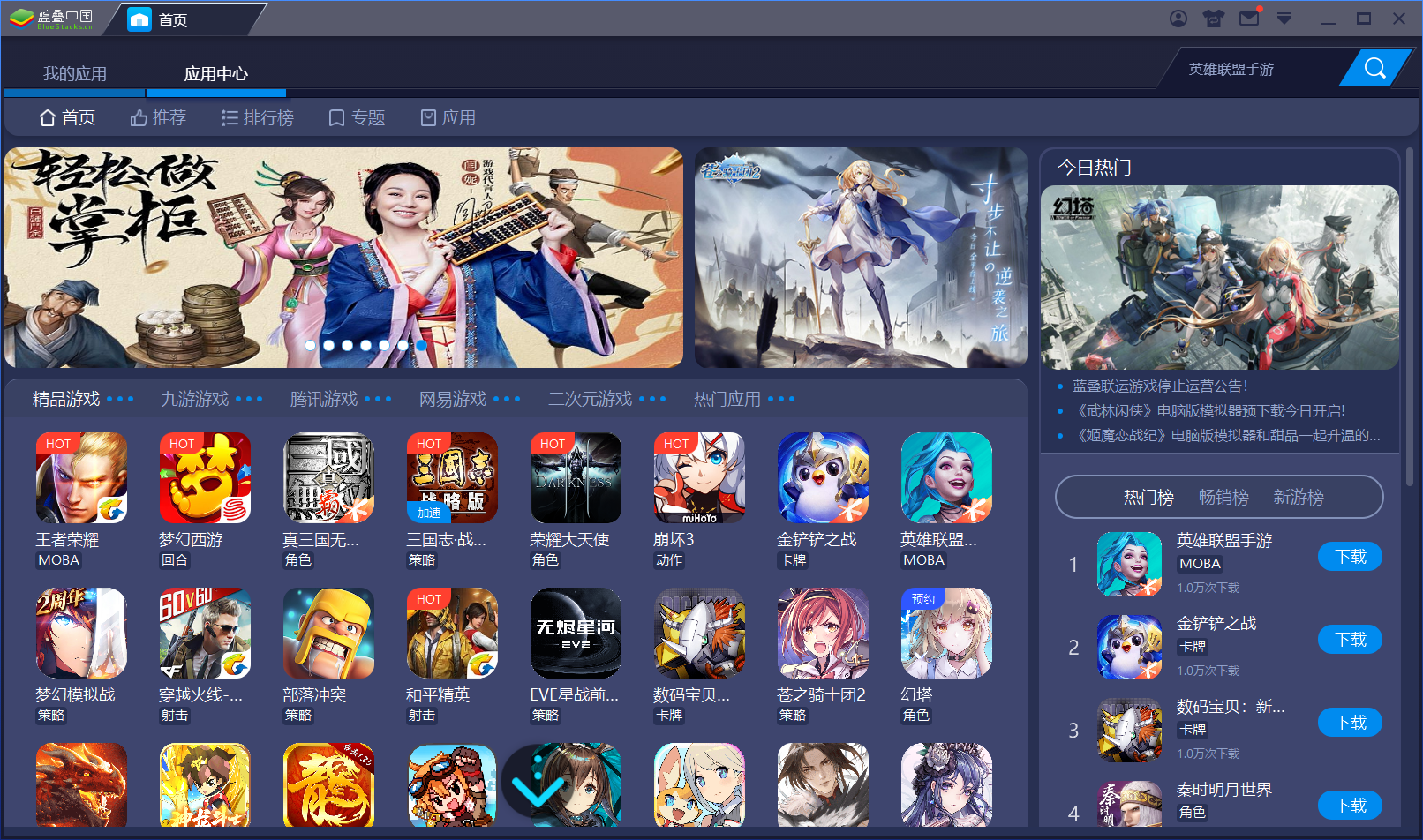 1.搜索蓝叠(认准蓝叠域名:https://www.bluestacks.cn),进入官网下载最新版本。