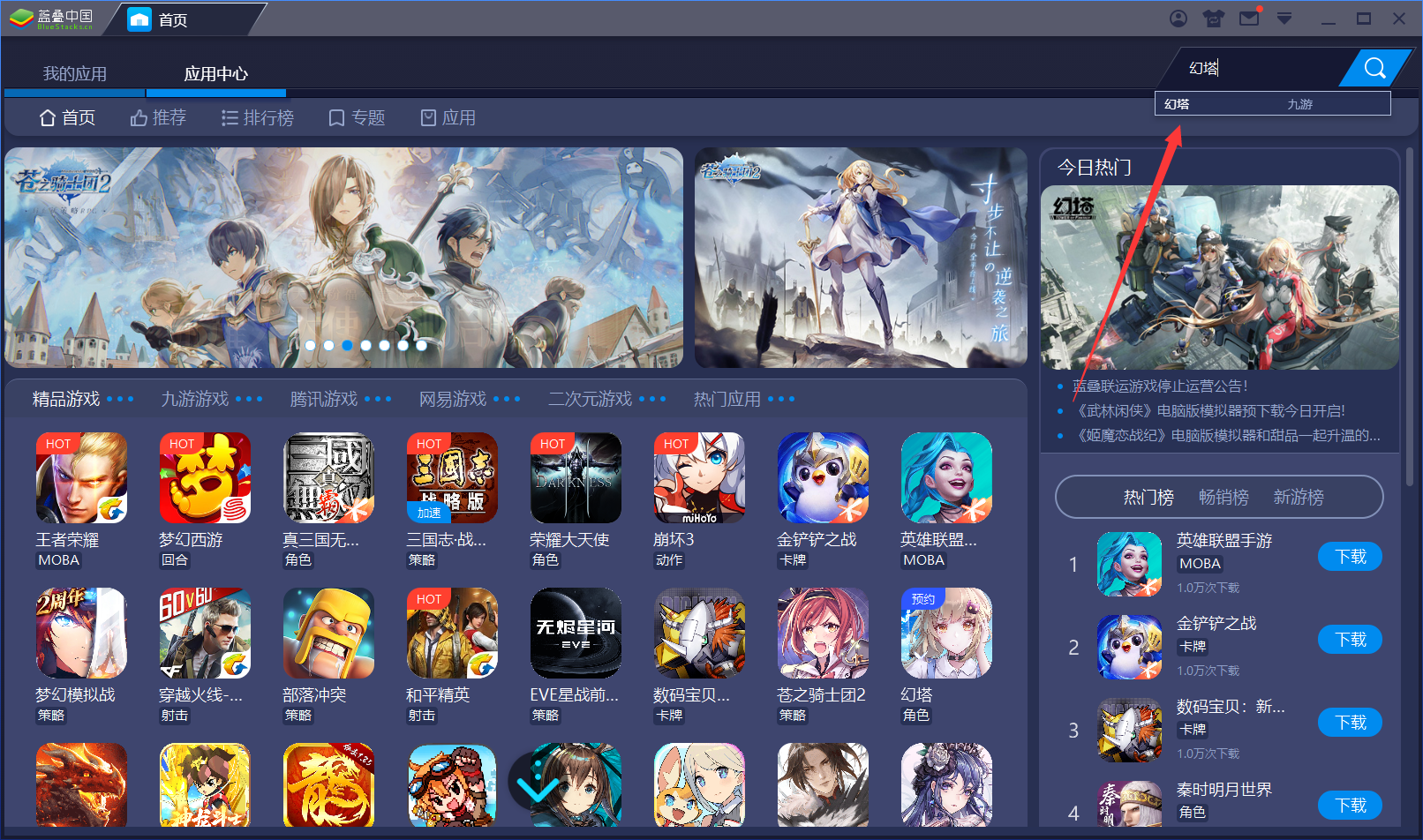 方法2:进入“应用中心”首页,通过推荐游戏,也可找到《幻塔》。