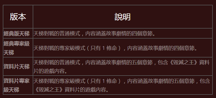 另天梯是非强制性的排名竞技系统,提供许多不同的模式让玩家选择,而且还有全新的天梯专属角色。每个游戏模式都有自己专属的天梯榜,玩家必须依靠策略在限定期间内进行天梯专属的游戏内容,并努力累积经验值。《暗黑破坏神2:重制版》将包含四种不同的天梯模式。