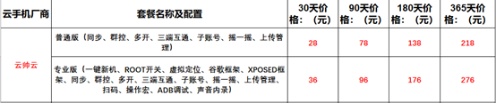 综合对下来,基本上现在工作室或者公会玩家挂机都是用云帅云手机的,价格比红手指便宜一半,一样的钱用双倍的时间,而且功能更丰富。