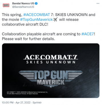 《壮志凌云2:独行侠》是汤姆·克鲁斯主演的飞行空战电影,该片将会在5月18日参与戛纳电影节。今日万代南梦宫宣布,旗下空战模拟游戏《皇牌空战7:未知空域》将于这部电影进行联动。游戏会在春季推出新的飞机DLC,更多细节将稍后分享。