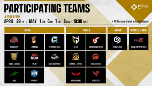 通过本次春季赛的洗礼,排名前八的战队将代表PCL赛区出征本次PCS6东亚洲际赛,他们分别是:NH战队、17战队、Tianba战队、PeRo战队、Tyloo战队、4AM战队、JuFu战队、iFTY 战队。他们将面对同样来自东亚赛区的中国港澳台、日本及韩国战队的挑战。面对这豪强纷争的场面,相信东亚赛区的每支战队都会拿出十二分精神去拼搏! 而作为我们大陆赛区的八支战队,他们的状态如何呢?让我们一睹为快!