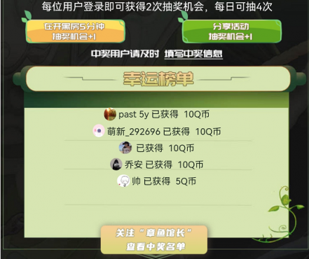 每位用户每日可活动2次抽奖机会,另外完成在皮皮蟹房间开黑5分钟或分享活动,均可获得1次抽奖机会,每日最多可以抽奖4次。