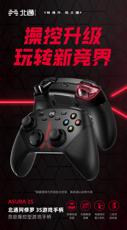 而北通阿修罗3搜集了足够多用户的体验反馈后,这款新品的突破在于毅然决然地对游戏体验的核心之一扳机键入手,加入了众多玩家好评如潮的霍尔扳机——机械按键的清脆手感+霍尔扳机的丝滑体验,这对梦幻组合将手柄的整体游戏体验再次抬升到了一个新境界。
