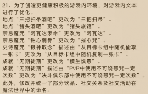 近日,网易手游《哈利波特:魔法觉醒》发布游戏更新公告。其中有一条引起了玩家的热议和不满。游戏内文本优化,包括禁忌魔咒“阿瓦达索命”更改为“阿瓦达”、“钻心剜骨”更改为“摧心咒”等。玩家发现游戏中不少地点、魔咒名称、魔咒描述、成就名称等都遭到了改动。