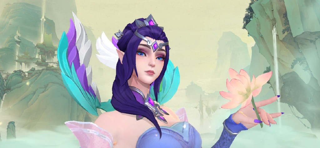 玉剑传说·苍鸾 莫甘娜不仅技能特效靓丽惊艳,整体造型上也体现着国风的淡雅之美。不管是穿着的长裙,束发的样式、额头的配饰,还是开场动画中的荷花与山水庭阁背景,都在一点一滴的诉说着东方美术形象的仙气飘飘。