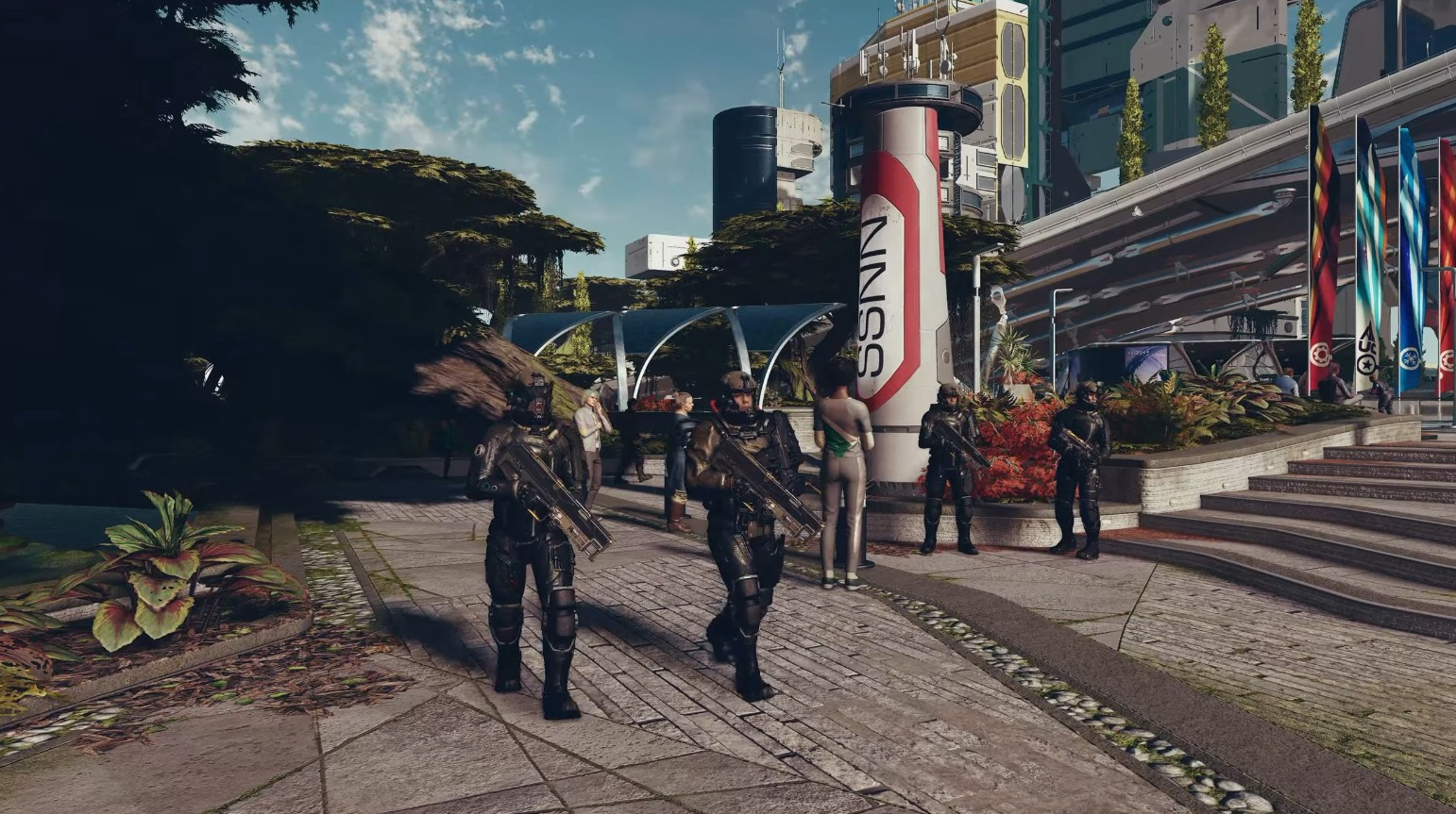 在此前公布过的实机演示中,新亚特兰蒂斯曾短暂的亮相过,Todd表示“它提供了你所期望的所有服务,各派系都能在这里得到想要的一切,并且新亚特兰蒂斯也是星群(Constellation)派系的总部。”