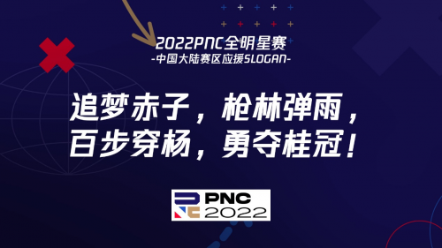 本活动累积收到征集的3000多份slogan投稿,经过代表PCL赛区出征的四位选手的认真挑选,最终用户【嘎嘎Q】的投稿脱颖而出,成为了本届PNC中国大陆赛区的专属应援口号:“追梦赤子,枪林弹雨,百步穿杨,勇夺桂冠!”