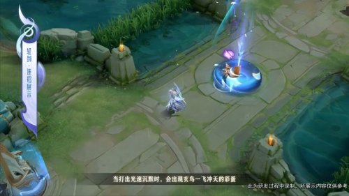轻剑状态下,被动层数的累计表现为从残月向满月的演变,四层被动叠满时满月悬于上方,月辉皎洁(当打出光速沉默时,会出现玄鸟一飞冲天的彩蛋哦);二技能轻剑的投掷改为玄鸟长鸣飞出,命中后长剑矗地而转,同时一片混沌中月食逐渐形成,捡剑也设计了羽毛飞舞的特效。