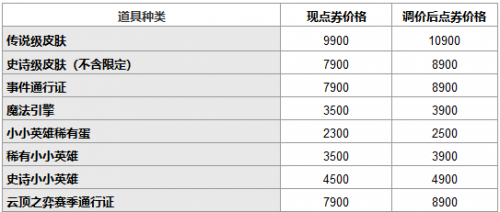 考虑到近年积累的研发和运营相关成本提升,英雄联盟计划于2022年9月对部分商品进行价格调整,具体调整规则如下文所示。