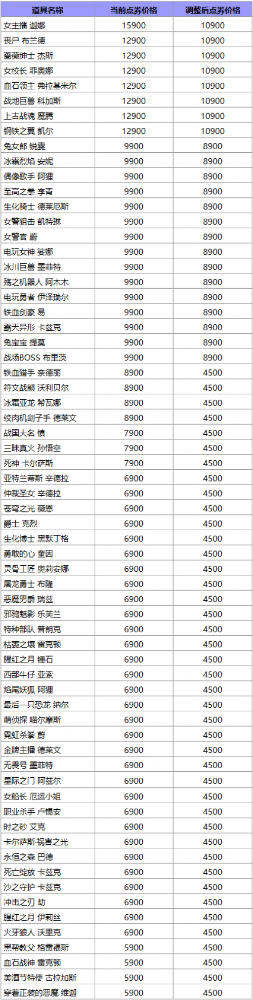 12.18版本更新后,所有新上线的以下种类道具价格将进行调整: