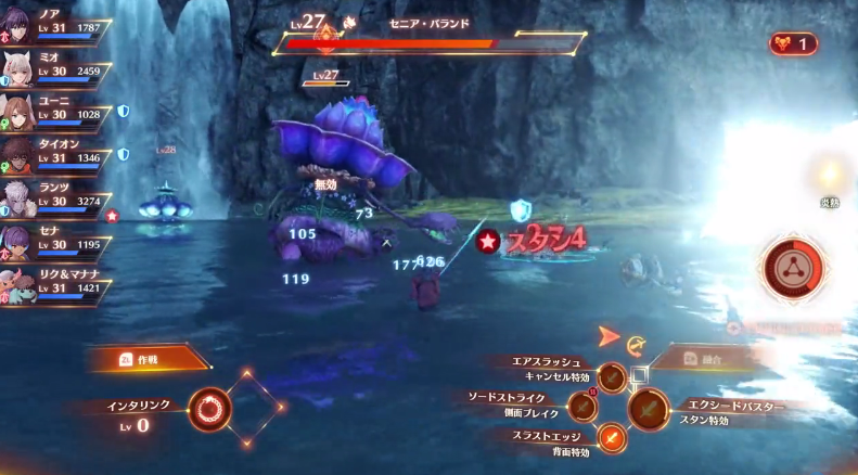 在“集中攻击”的指令下,全体成员会攻击玩家所操作的角色的攻击目标。画面右上方显示会显示敌人的数量,当存在2个以上敌人的时候,就需要逐个击破!