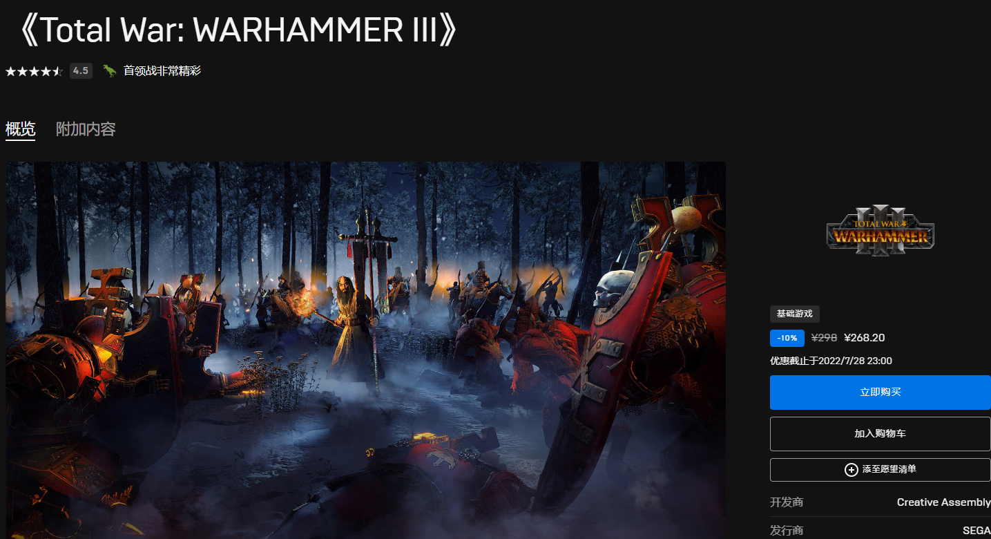 《战锤:全面战争3》9 折优惠,售价268.2元