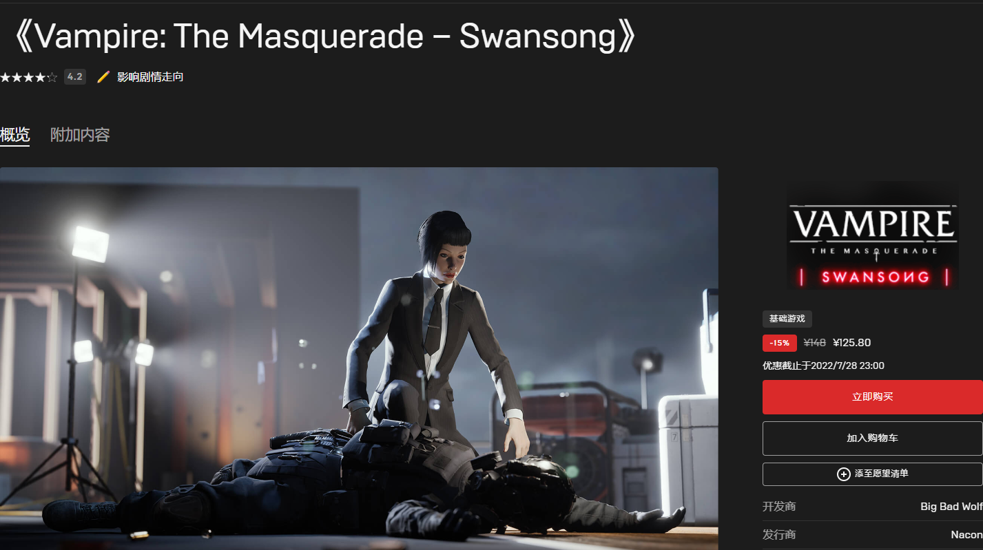 《吸血鬼:避世-绝唱》8.5折优惠,售价125.8元
