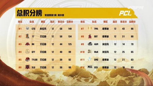 经过一段时间的休赛和调整,各支战队以全新的面貌集体亮相夏季赛的舞台。熟悉的积分制、熟悉的战场,每支战队都拿出十足的实力来夺取每一分。首周周中赛,CTG战队一鼓作气,连续三天蝉联周中赛榜单,队内LuckyWss选手不愧为队内突击手,强有力的得分能力帮助队伍以149分拿到首个晋级周决赛的名额;17战队的SuJiu选手和shou选手作为队内核心淘汰王,让队伍以134分排在榜单第二位;春季赛冠军队伍NH战队也不甘示弱,以125分排在第三位。此外,艾伦格赛区的TYLOO战队、GFY战队和XLG战队也悉数晋级。