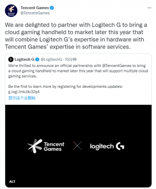 Tencent Games官方twitter同步转发LogitechG推文