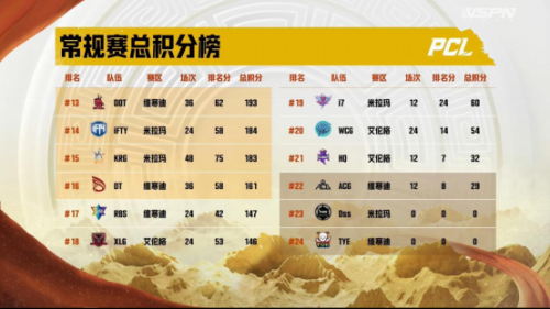 2022PCL夏季赛常规赛已然落幕,回顾本次常规赛:17战队依靠前两周势如破竹的冲劲,打下了十分珍贵的分数,并在后面的赛程中不断积累,最终以384分拿到常规赛的积分榜第一;NH战队尽管在常规赛前期有些乏力,不过及时地调整状态,向我们展现了春季赛冠军应有的实力,以331分获得常规赛第二名;CTG战队则是拿下了两周的周冠军,并且在只有36场比赛场次的情况下斩获288分,力压其它48场次的战队夺得常规赛积分榜第三名。