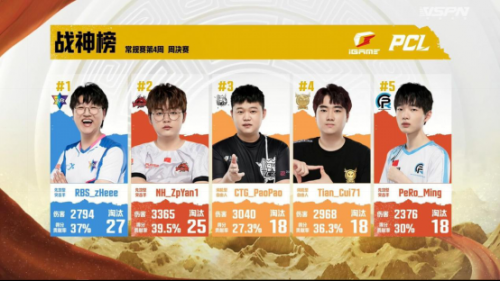 选手榜单:RBS战队zHeee选手荣膺本周战神