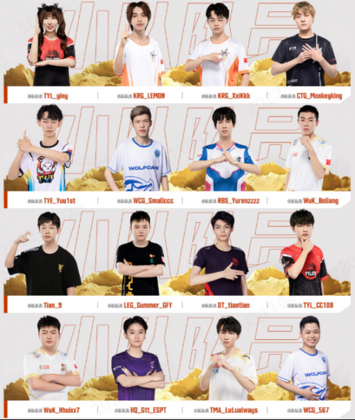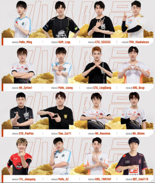 本次全明星的12支小队队长根据投票名次排序为:4AM战队的ZGG01选手、xxxLu选手、Forever选手;PERO战队的Myl选手;17战队的Xbei选手、Lilghost选手;NH战队的MMing选手;17战队的xwudd选手;TMA战队的CRAZY112选手;17战队的SuJiu选手;CTG战队的LuckyWss选手和Tianba战队的LinShu21选手。