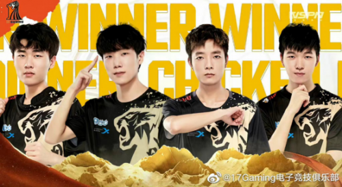 17战队在本周季后赛的思路很明确,求稳争先:首日比赛中,17战队凭借Lilghost选手单日11个淘汰数和35.8%的得分贡献率,排在第三的位置;第二日第三局九阶段,17战队占据高点优势将4AM战队独狼淘汰后轻松拿下首鸡;第三日第五局七阶段,面对城内的大混战,17战队不断游走收割分数保存实力,最后阶段,17战队四人思路明确,先淘汰NH战队独狼选手后,分散阵型搜索残编;WUK战队偷袭一人得手后,17战队剩下三人迅速锁定WUK战队选手并集火将其淘汰,成功吃鸡!第四日第二局七阶段,17战队三人分散点位稳步进圈;八阶段,17战队锁定NH战队独狼位置,将其淘汰后,以9个淘汰数吃鸡;第五日第五局最后阶段,满编的17战队在山头采取远点狙击和侧面游击的战术,成功将CTG战队淘汰出局吃鸡。17战队以平均每日一鸡的优势,拿下261总积分,稳住了季军宝座。