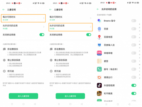 开学季,虽然未成年人不像在放假期间沉迷玩游戏、刷抖音、看视频,但也依然要为他们创造管束的空间。比如OPPO就针对这种情况推出了【儿童空间】功能。该功能启动后,家长可以根据实际情况,设置手机的使用时长和可使用的APP,如每次只能用半个小时,只能打开抖音等等,甚至可以禁止手机连接网络,防止未成年人长时间玩手机。在开学后,该功能相信可以很好地管理儿童使用手机的时间问题。