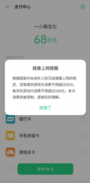 具体来说,在OPPO防沉迷系统中,只要在游戏中付费都要完成实名认证。该系统禁止8岁以下未成年人进行游戏充值;8岁以上且未满16岁的用户单次充值不超过50元,每月累计充值不超过200元;16岁以上但未满18岁的用户,单次充值不超过100元,每月累计充值不超过400元。未进行实名认证的用户不能在OPPO手机上进行充值。