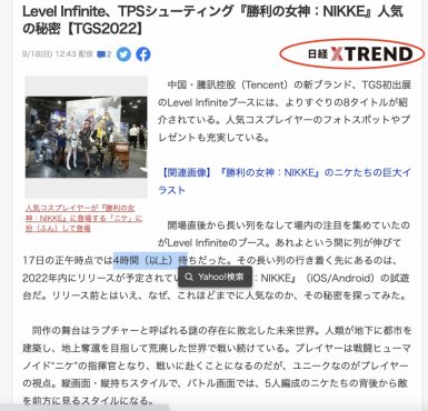 日经XTREND报道更是提到,展区人气夸张到玩家需要排队4小时以上,只为体验《胜利女神:NIKKE》等游戏。