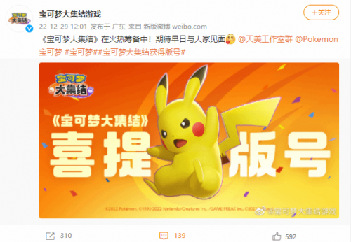 《宝可梦大集结》是GameFreak和腾讯天美工作室共同开发的团队策略对战游戏。昨天国家新闻出版署公布了12月的游戏版号,《宝可梦大集结》成功获得版号。游戏官博宣布正在火热筹备中,期待早日与大家见面。
